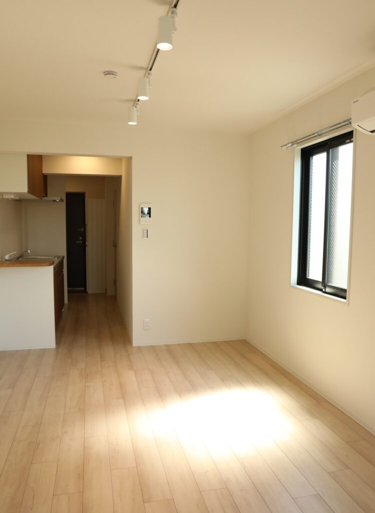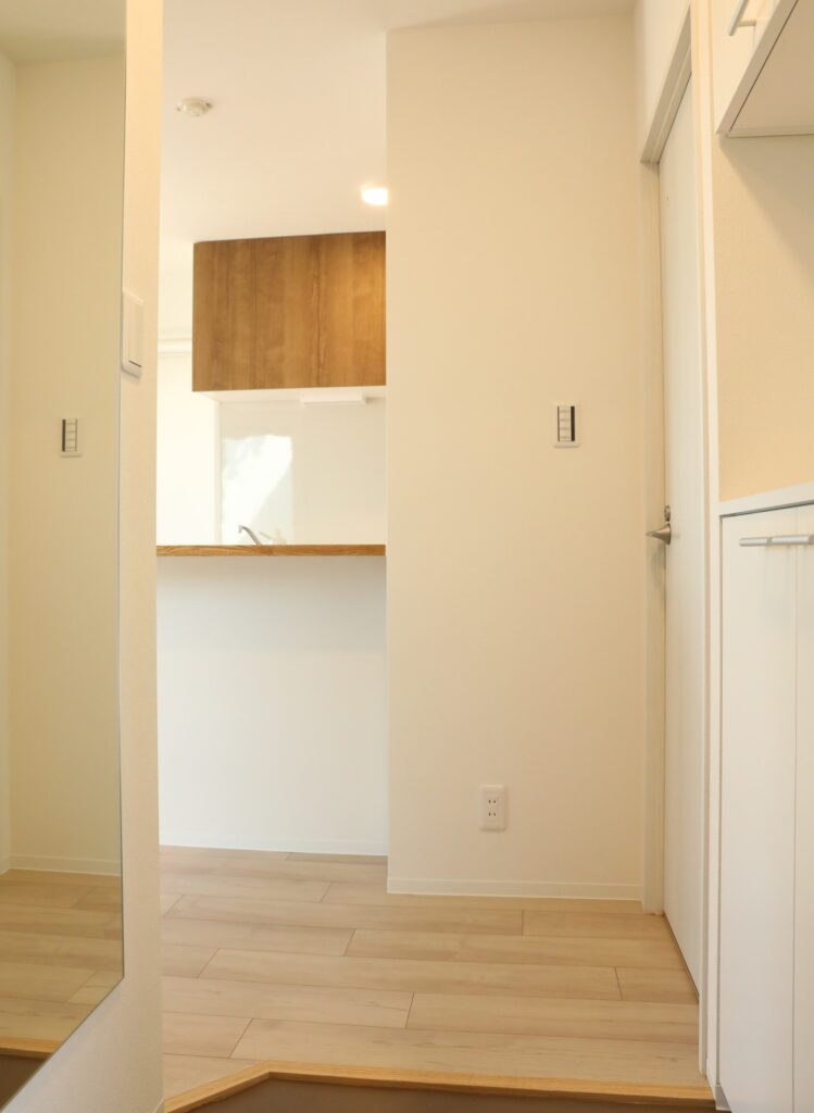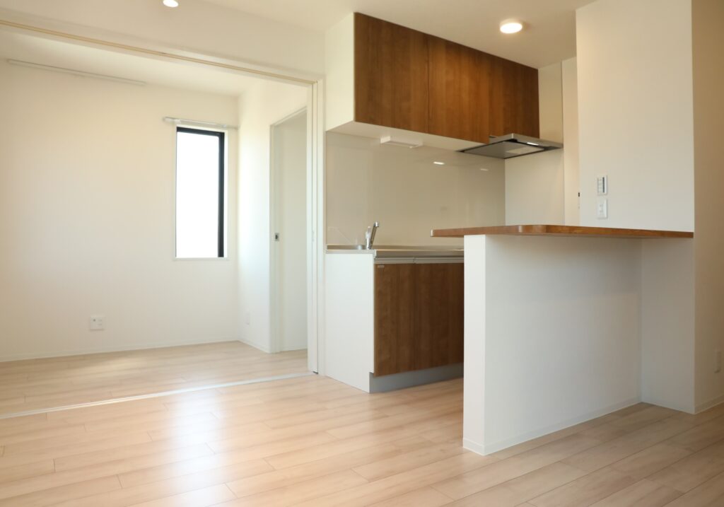 お部屋はコンパクトながら、リビングにカウンターを設けることで、毎日の暮らしに“ちょっとした余白”を生み出しました。食事をしたり、仕事や勉強をしたり、時にはカフェのようにくつろいだり。限られた空間でも心地よく過ごせるよう、使い勝手とデザインにこだわっています。