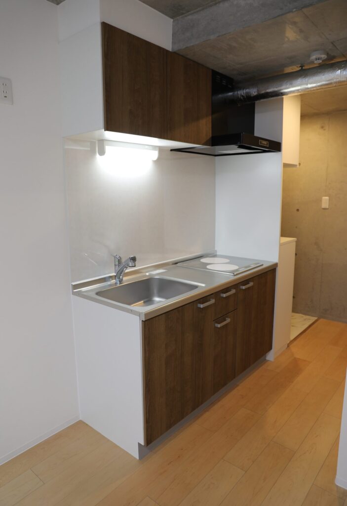 コンクリート打放しの外観が印象的な都市型デザイナーズマンション。無駄を削ぎ落とした端正なフォルムと整った窓配置により、周辺環境と調和しながらも確かな存在感を放ちます。共用部から室内まで一貫したデザインを採用し、天井コンクリート現しによる開放感のある居住空間を実現。木質フローリングとのコントラストが、落ち着きと温もりを演出します。機能性に配慮したキッチンや水回り設備に加え、一部住戸には室内階段を設け、立体的で個性ある住まいを提供します。
